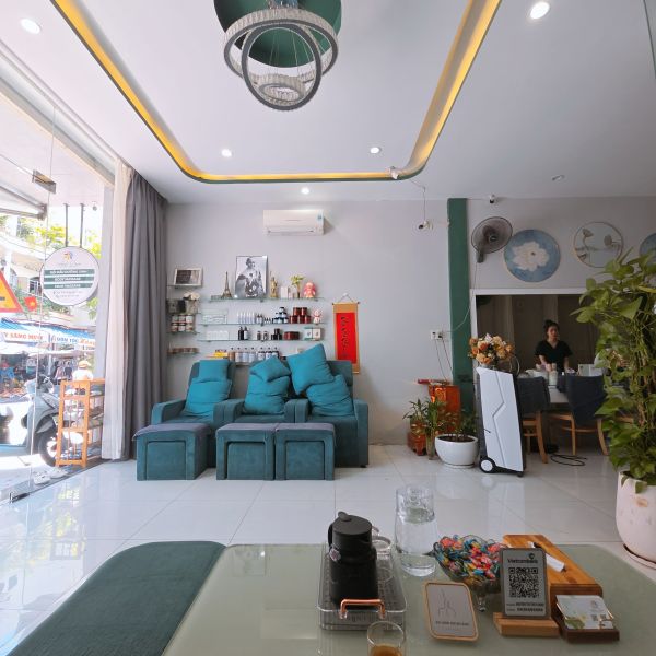 머리, 어깨, 목, 등 부위를 마사지하면서 천연 허브 샴푸로 머리와 두피를 깨끗하게 하는 과정입니다.